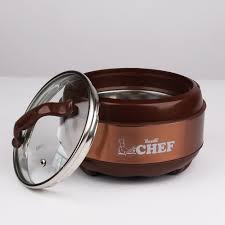 The Majestic Chef Stainless Steel Clarion Hot Pot, with its sleek brown finish and durable 2-liter capacity, combines functionality and style for everyday use. Crafted from high-quality stainless steel, it ensures even heat distribution and long-lasting performance. The transparent glass lid allows easy monitoring of your food without lifting the cover, helping retain heat and moisture. Ideal for serving soups, stews, or beverages, this medium-sized hot pot offers reliable insulation to keep contents warm for longer periods, making it an essential addition to any kitchen or dining setup.